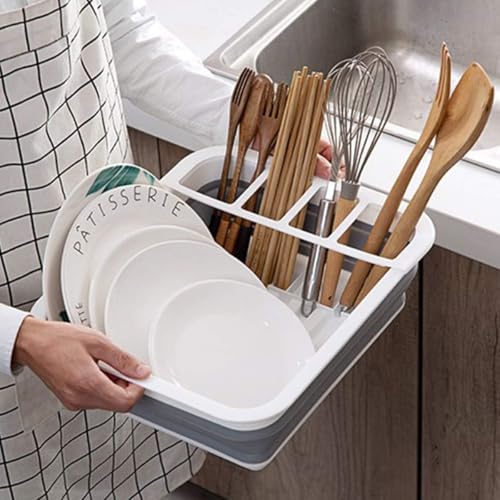 Hardify - رف تجفيف أطباق قابل للطي ومحمول مزود بصفاية وحامل لأدوات المائدة موفر للمساحة يمكن طيه بشكل مسطح لسهولة التخزين ويفتح بارتفاع 12.7 سم للمطبخ والسيارة المتنقلة والتخييم من هارديفاي، رمادي وأبيض