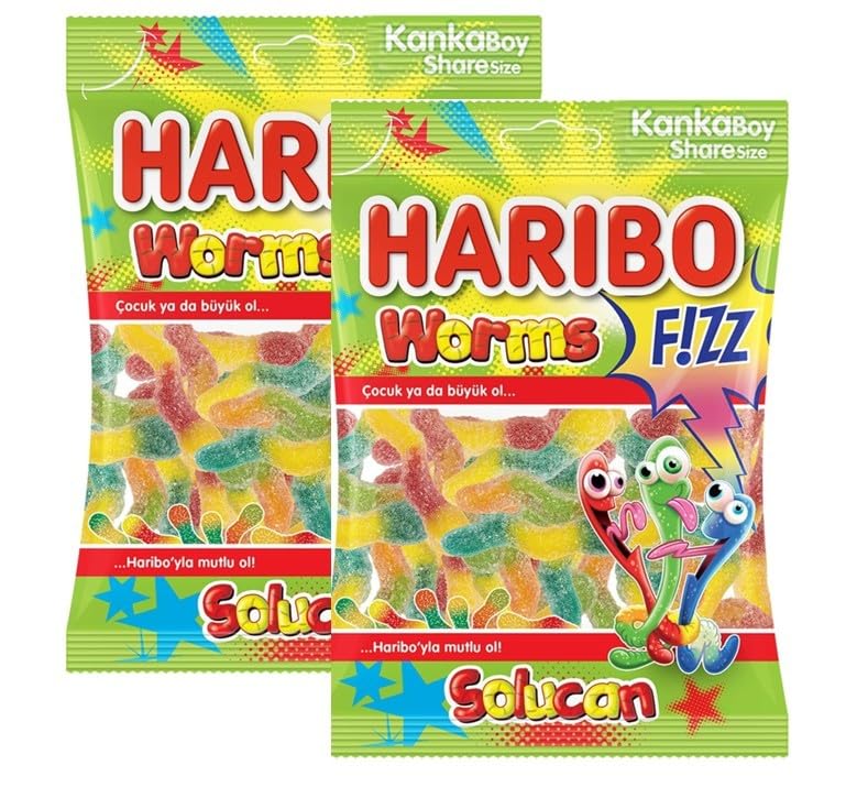 - طبقة خارجية فوارة: حلوى جيلاتينية ملونة على شكل دودة مع طبقة فوارة حامضة مبهجة تضيف لمسة مثيرة إلى الملمس الجيلاتيني الكلاسيكي