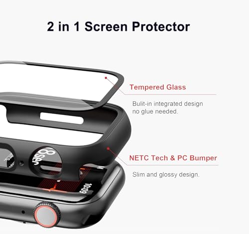 - تصميم 2 في 1 - جراب صلب من البولي كربونات مع شاشة حماية رفيعة من الزجاج المقوى الشفاف عالي الدقة يغطي الشاشة والحواف بالكامل. تحمي التغطية الكاملة ساعة ابل الخاصة بك من الخدوش والصدمات والسقوط والتلف الناتج عن الاستعمال اليومي.