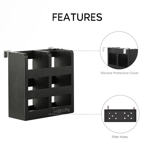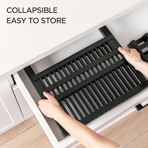 hblife - اتش بي لايف رف اطباق من الخيزران الاسود قابل للطي بطبقتين لتجفيف الاطباق مع مجموعة حامل ادوات المائدة (رف اطباق مع حامل اواني)