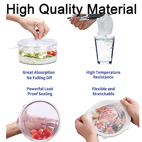 - مواد عالية الجودة: صحية وآمنة، غطاء سيليكون قابل لإعادة الاستخدام عالمي قابل للتمدد، مصنوع من مواد عالية الجودة، صديق للبيئة، متين ومقاوم للتسرب، يمنع الإغلاق المحكم والانسكابات ونضارة الطعام لفترة أطول.