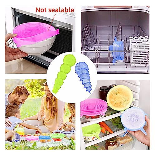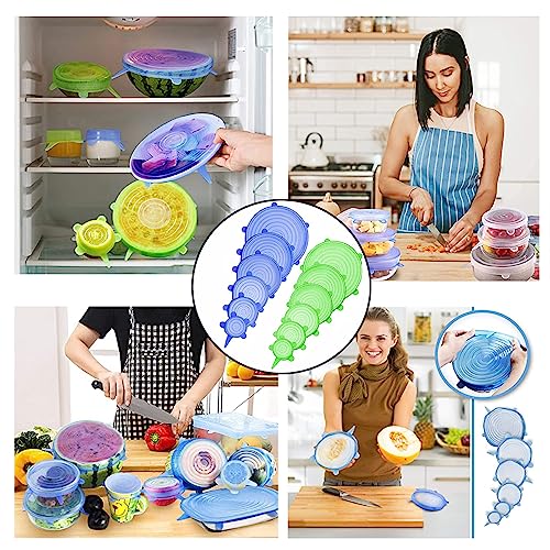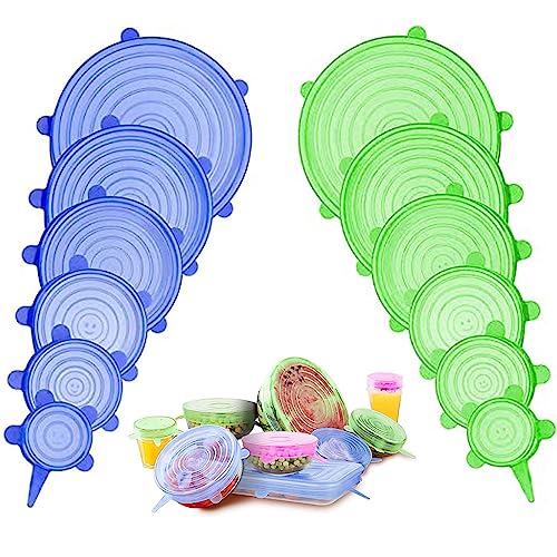 HCYANGZHANG - غطاء سيليكون قابل للتمدد، 12 قطعة من غطاء سيليكون قابل للتمدد، قابل لاعادة الاستخدام باحجام مختلفة، غطاء قابل للتمدد للاوعية والاكواب والعلب والفواكه (اخضر + ازرق)