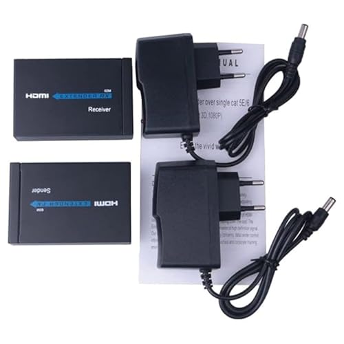 Generic - وصلة تمديد منفذ إتش دي إم آي، توصيل فردي 5e/6، لنقل الصوت والفيديو بشكل متزامن، لمسافه 60 م؛ جهاز إرسال + جهاز إستقبال، واثنين من محول الطاقة 5V/1A المدرجة