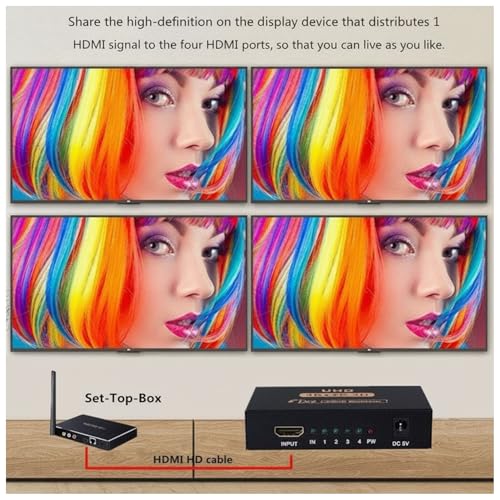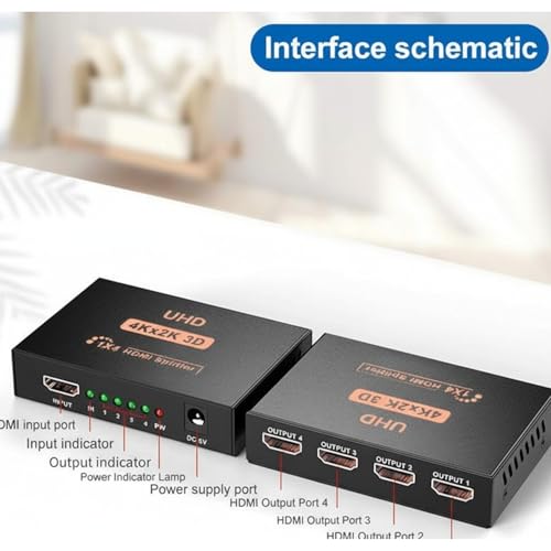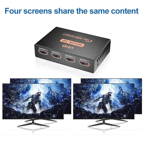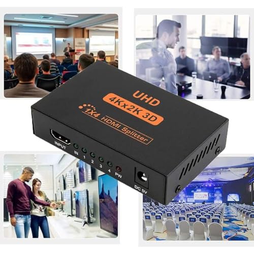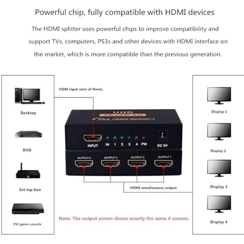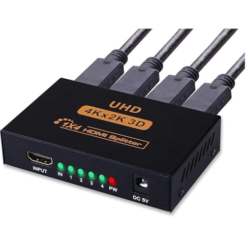 Generic - موزع HDMI 1×4، 4K UHD 3D 2160p 1080p، 1 مدخل 4 منافذ إخراج، دعم شاشة متعددة، مؤشرات ليد، مصدر طاقة تيار مستمر 5 فولت