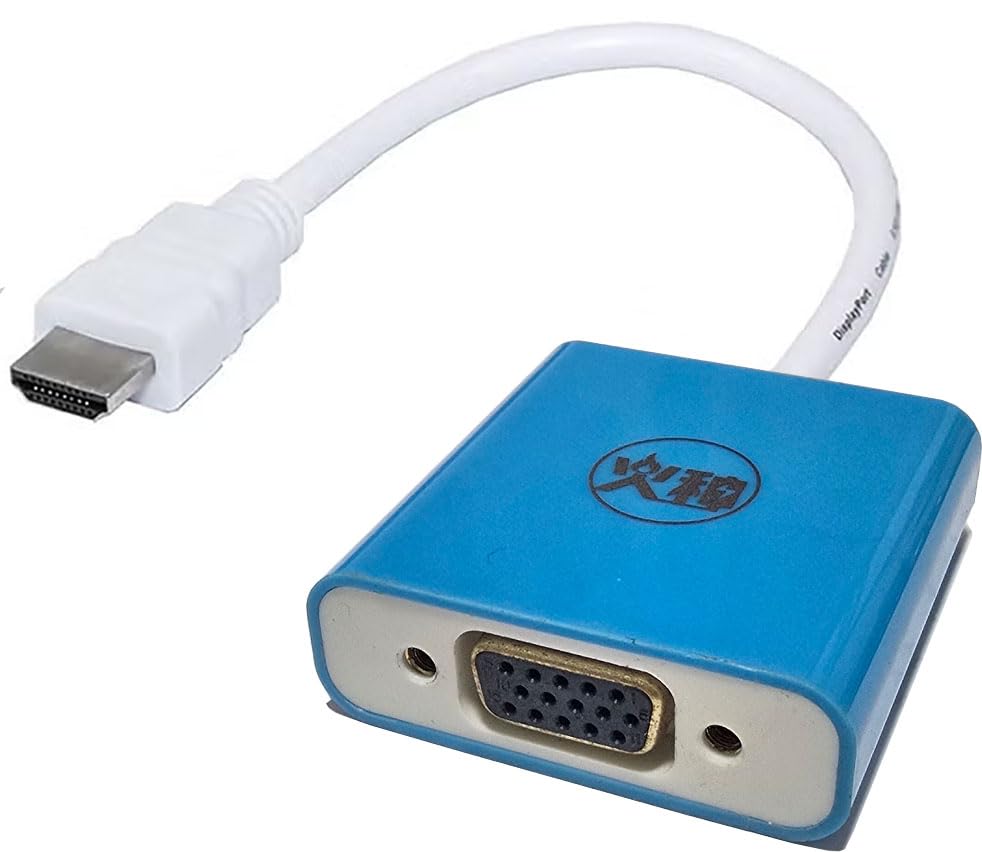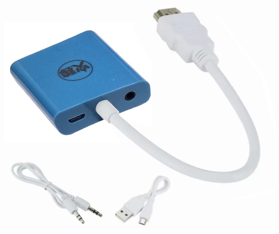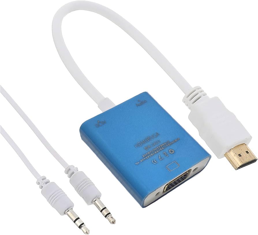 Generic - محول من HDMI إلى VGA بدقة 1080P مع منفذ صوت 3.5 ملم وكابل فيديو HD عالي الدقة للكمبيوتر وأجهزة اللاب توب، أزرق فاتح