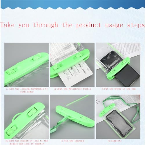 - 【سهل الاستخدام】تشغيل جراب الموبايل المقاوم للماء بسيط وسهل الإغلاق، فقط اضغط على القفلين. ضع موبايلك في حقيبة مقاومة للماء، فالموبايل أكثر أمانًا. يمكن استخدام حافظة الحماية من الماء للموبايل لفترة طويلة، سهلة الحمل. ملاحظة: يرجى التأكد من إغلاقه بإحكام قبل الاستخدام.