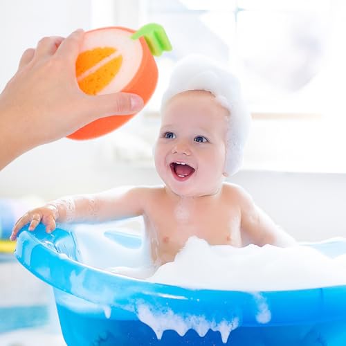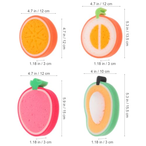 Healifty - مجموعة إسفنجات استحمام لطيفة على شكل فاكهة - مانجو وشمام وبطيخ وبرتقال وفراولة - مادة إسفنجية - نمط مرح - أدوات استحمام للأطفال من هيلفتي، 4 قطع
