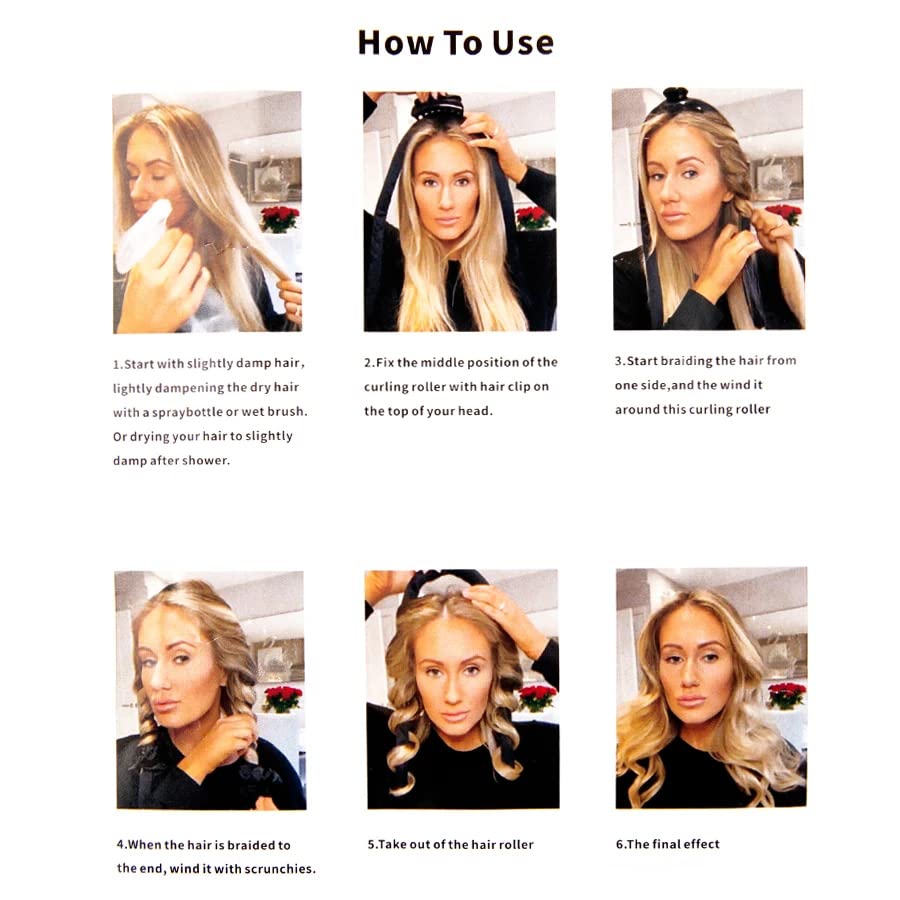 - 【كيفية الاستخدام】قبل الذهاب إلى السرير، ضعي شريط الرأس المجعد بدون حرارة على رأسك، ثم قم بتثبيته في الأعلى ثم ضفيرة الشعر حول قضيب التجعيد. ستحصلين على تجعيدات سهلة في صباح اليوم التالي.