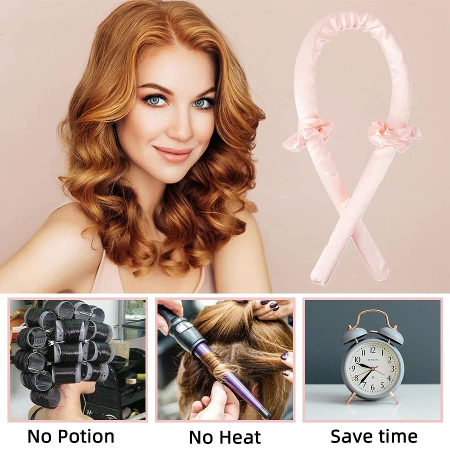 NZBZ - شريط راس لتجعيد الشعر بدون حرارة، مجموعة تجعيد الشعر بدون حرارة للنساء، اداة تجعيد شعر حريرية بدون حرارة مع دبوس شعر، ادوات تصفيف الشعر بدون تموجات حرارية للشعر الطويل والمتوسط