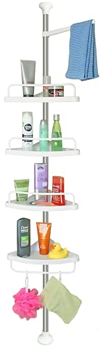 Generic - رف زاوية حمام متين من الفولاذ المقاوم للصدأ - منظم مكون 4 رفوف مع ارتفاع قابل للتعديل عمود + + منشفة متحركة + 3 خطافات يدعم حتى 16 كجم طول 1 متر إلى 3.20 سم متعدد الألوان