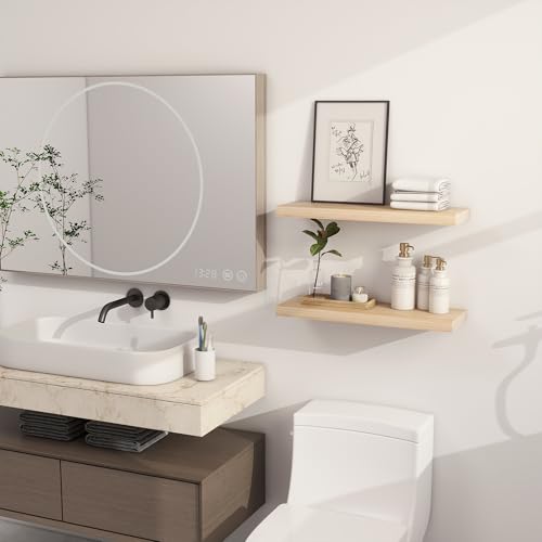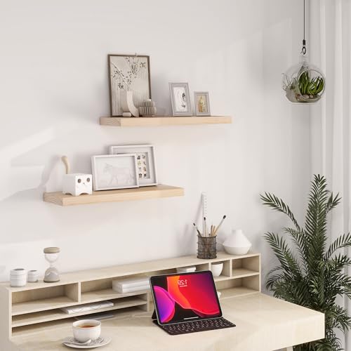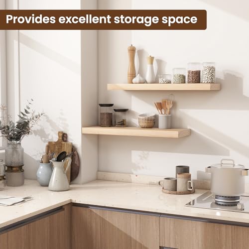 Heimlove - أرفف عائمة من خشب الصنوبر الصلب للحمام وغرفة النوم وغرفة المعيشة والمطبخ وديكور المكتب من هيملوف، مقاس 61 سم، لون خشبي (Natural)، مجموعة من قطعتين