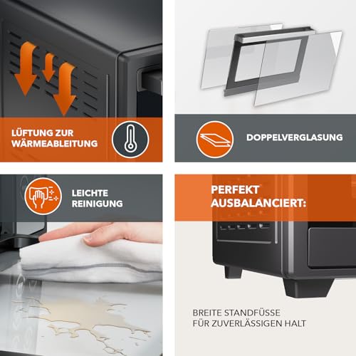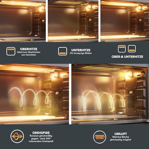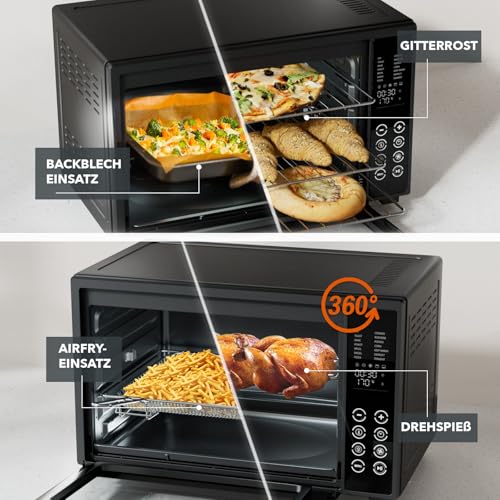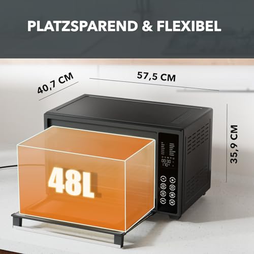 Heinrich´s - فرن متعدد الاستخدامات صغير 48 لتر مع ميزة تدوير الهواء وعداد الوقت 8 ساعات وإضاءة ودرجة حرارة قابلة للتعديل بين 100 و230 درجة مئوية مع تحكم باللمس، يتضمن ملحقات من هاينريش، أسود، 2000 واط (48 لمس)
