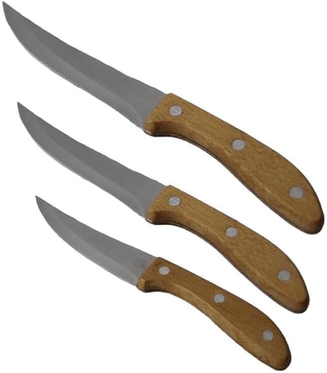 Generic - طقم سكاكين مطبخ عالية الجودة من الفولاذ المقاوم للصدأ بمقبض خشبي، مكون من 3 قطع، طول الشفرة 15 سم، 18 سم، 20 سم، سمول (S) وميديوم (M) ولارج (L) (حادة جدًا)