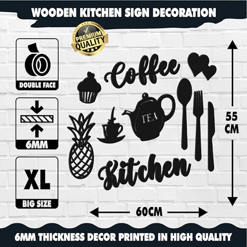 - ديكور حائطي للمطبخ مصنوع من خشب MDF إسباني عالي الجودة بسماكة 6 ملم، يتميز بالقوة وخفة الوزن، مع لون أسود أنيق يتناسب مع جميع أنماط ديكورات المطابخ الكلاسيكية والعصرية، ويعد من أفضل خامات الديكور المنزلي المستخدمة حاليًا