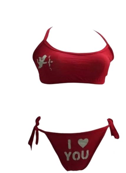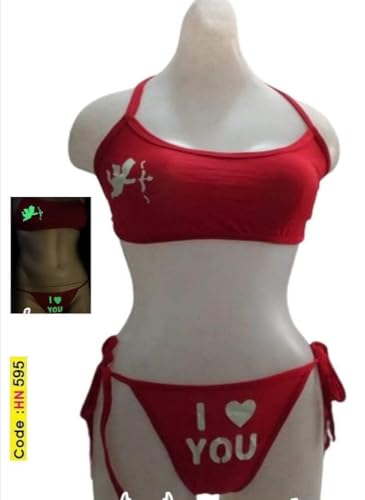 هنادي - بيبي دول طقم بيكيني بخامة القطن المطبوع بتصميم مضيء في الظلام لاطلالة فريدة ومميزة – فري سايز يناسب جميع المقاسات موديل Hn 595