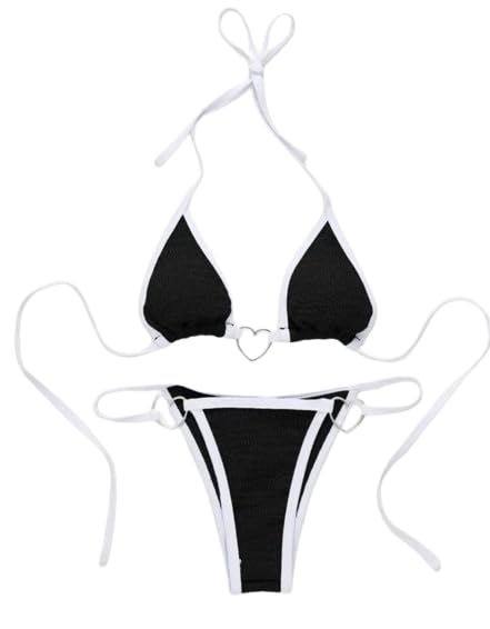 هنادي - بكيني قطعتين انيق باللونين الاسود والبيض - خامة ليكرا عالية الجودة HN 6048، مقاس واحد