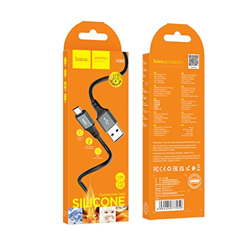HOCO - كابل شحن ونقل بيانات من السيليكون USB-A إلى Micro-USB هوكو متوافق مع سامسونج وهواوي وشاومي وأوبو لون أسود 2.4 امبير طول 1 متر موديل X86