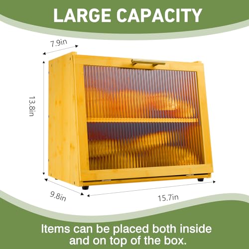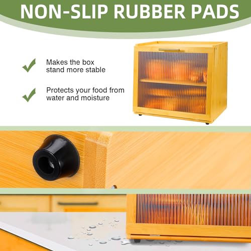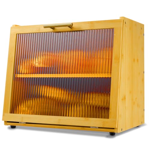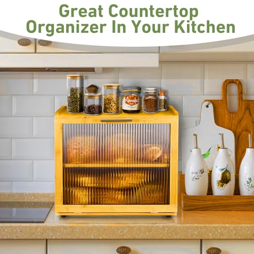 HOFUJINGSHI - صندوق خبز من البامبو مزدوج الطبقات لسطح طاولة المطبخ، وعاء لتخزين الخبز، صندوق خبز كبير بتصميم ريفي من هوفوجينغشي