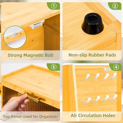 - ✔️【سعة كبيرة】يوفر صندوق الخبز المصنوع من البامبو مزدوج الطبقات مساحة واسعة لتخزين وتنظيم الخبز والوجبات الخفيفة الخاصة بك، مما يجعله منظمًا مثاليًا لسطح طاولة المطبخ.