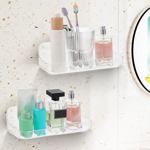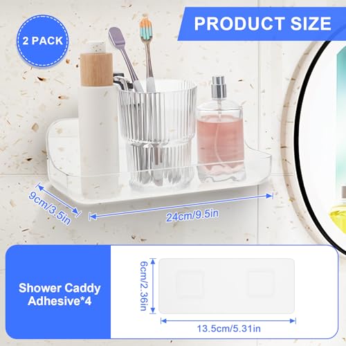 HOFURME - رفوف دش أكريليك من هوفيرم، رفوف أكريليك لاصقة للجدار، علبة دش بلاستيكية مع شريط ذاتي اللصق بدون ثقب، منظم دش يثبت على الحائط للتخزين في الحمام والمطبخ