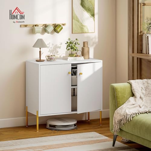 HOMCOM - هومكوم خزانة جانبية لغرفة المعيشة، اثاث تخزين مع باب مزدوج مضلع، رف قابل للتعديل، اقدام ستيل، نمط عصري، خزانة جانبية لغرفة الطعام والمطبخ، 80 × 39.1 × 76 سم، ابيض