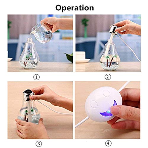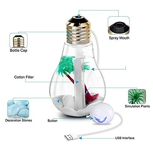 Generic - أجهزة ترطيب هواء منزلية على شكل لمبة للمكتب تشغيل هادئ للغاية وظيفة إضاءة ليلية وضعين للرش وإغلاق اوتوماتيك لغرفة النوم وغرفة الأطفال البيبي والمكتب والمنزل، حجم 13.5 مل