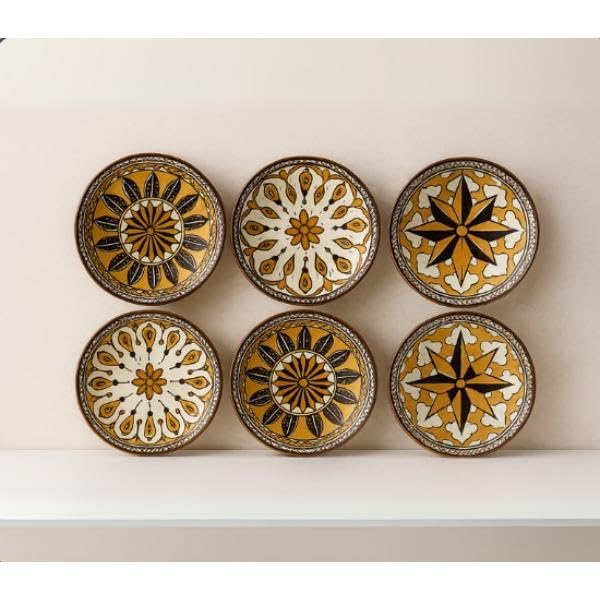 Home Care. - طقم أوعية عميقة اندلسية TT-1576A من 6 قطع بنقشات مميزة، من البورسلين، لتناول الطعام من هوم كير