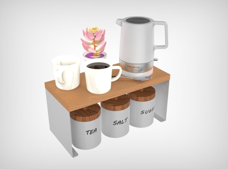- قم بتكديس وحدتين: قم بتكديس ما يصل إلى رفين لزيادة التخزين في المساحات الصغيرة. بفضل تصميمه النظيف والدافئ، فهو إضافة أنيقة لأي سطح طاولة.