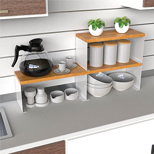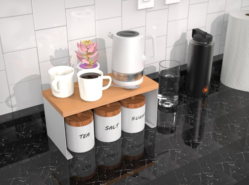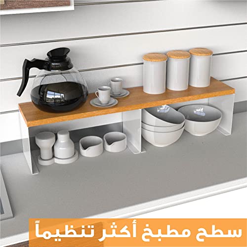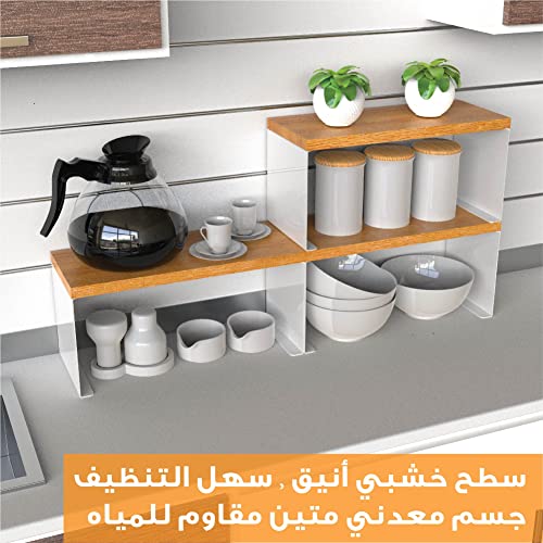 - رف خشبي وستيل قابل للتكديس: مثالي لأسطح الطاولات أو أسطح الطاولات أو الخزانات الداخلية، يضيف هذا الرف متعدد الاستخدامات مساحة تخزين إضافية أينما احتجت إليه. مثالية لتنظيم التوابل أو الزيوت أو أساسيات المطبخ اليومية على رف قوي قائم بذاته.