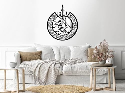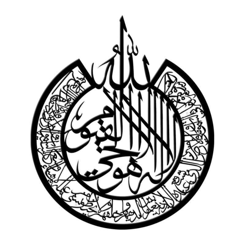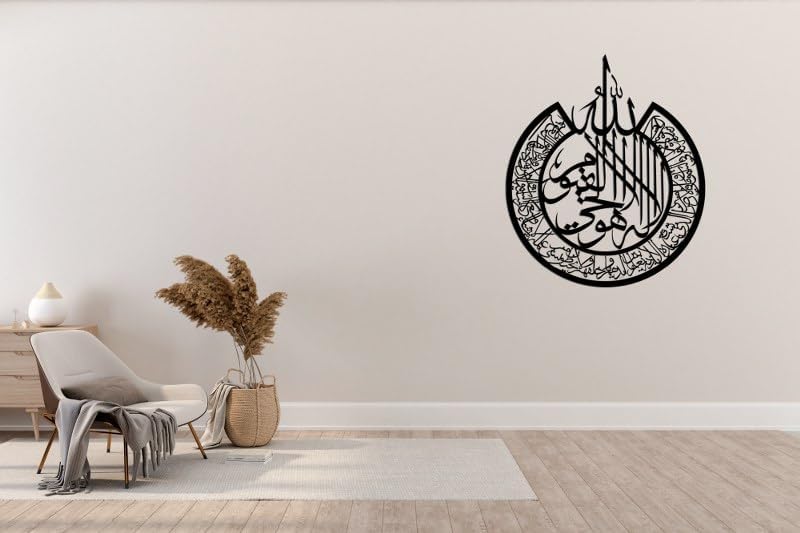 Home Gallery - لوحة فنية جدارية خشبية بتصميم اية الكرسي، مقاس 80×80، لون اسود