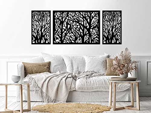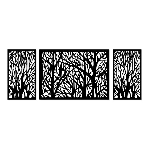 Home Gallery - لوحة فنية جدارية من الخشب للزينة بتصميم أشجار الغابة من هوم جاليري، مجموعة من 3 قطع، مقاس 80 سم × 2.25 م