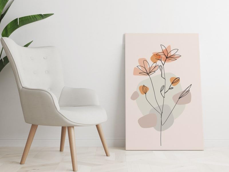 Home Gallery - لوحة فنية جدارية قماشية مطبوعة بخط زهور تجريدي بالوان مائية مقاس 90 × 60، من هوم جالاري، بيج