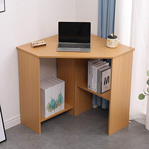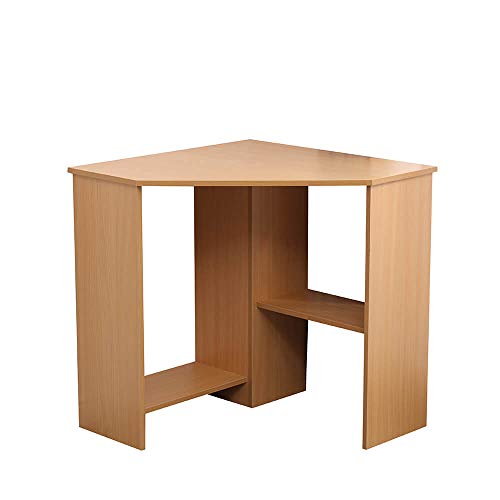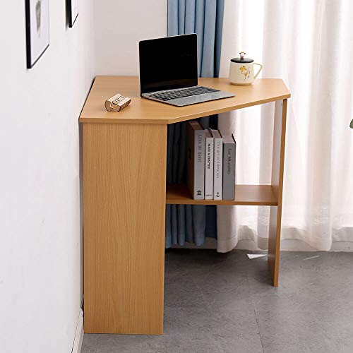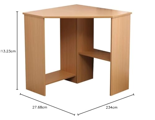 Home Source - مكتب زاوية للكمبيوتر واللاب توب للمنزل والمكتب والدراسة واللعب من هوم سورس، مصنوع من خشب ام دي اف مضغوط، بلون خشب الصنوبر، يشتمل على رفين، متعدد الألوان