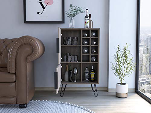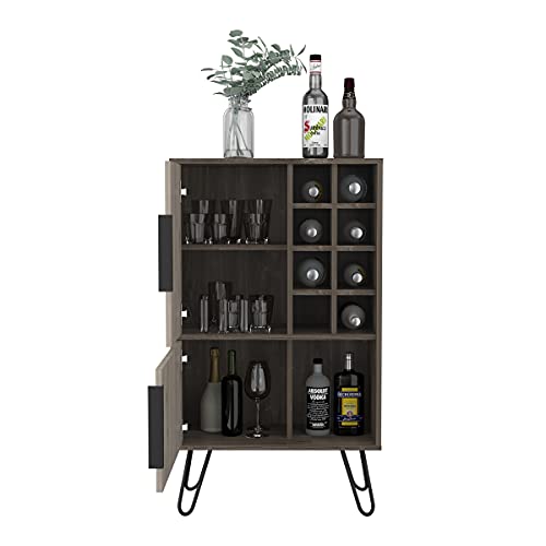 Home Source - هوم سورس خزانة جانبية لتخزين المشروبات مكونة من 8 ارفف، مصنوعة من خشب ليفي متوسط الكثافة/خشب بلوط رمادي داكن، ببابين، تابلبار