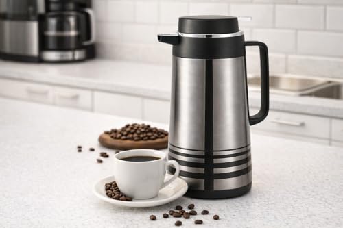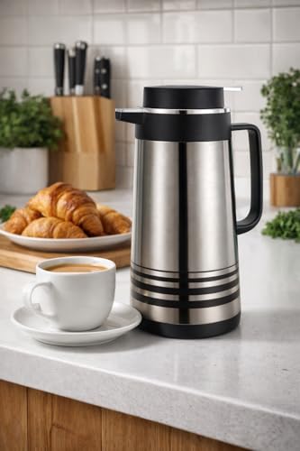- حافظة حرارية منزلية للاستخدام اليومي والضيافة، تجمع بين خارج ستانلس ستيل وداخل زجاجي لتقديم المشروبات الساخنة، مناسبة للإفطار والاجتماعات العائلية، مدة الحفظ مذكورة حتى 12 ساعة، تفاصيل الغطاء غير متوفر.