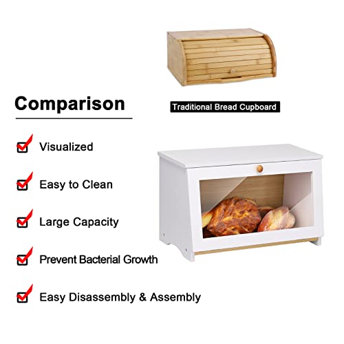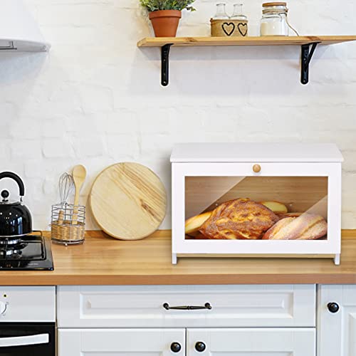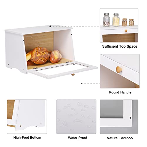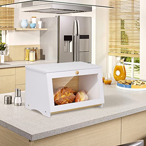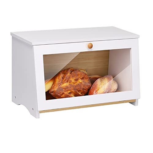 HOMEKOKO - صندوق خبز خشبي لطاولة المطبخ، صندوق تخزين طعام من الخيزران بطبقة واحدة بسعة كبيرة من هوم كوكو (أبيض)