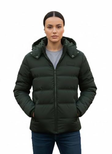 Generic - جاكيت منفوخ بغطاء للرأس، ملابس خارجية للشتاء، معطف بورغندي بسحاب كامل، تصميم مبطن معزول