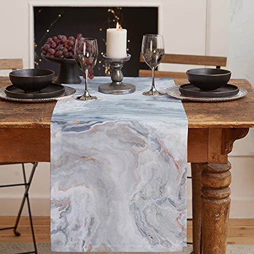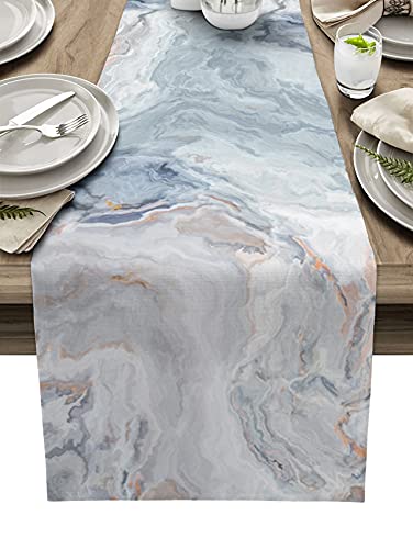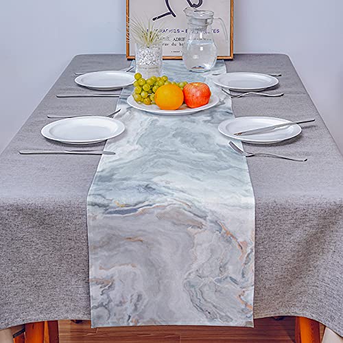 Housein - مفرش طاولة منزلي بتصميم حجر الرخام الأبيض لغرفة الطعام والمطبخ وغرفة المعيشة وديكور طاولة العطلات والحفلات