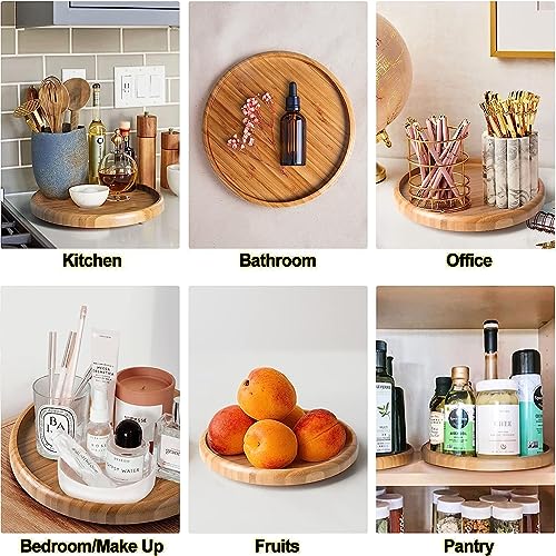 HPALIPRT - صينية تنظيم من الخيزران من ليزي سوزان - 10.5 انش، عبوة واحدة لرف الخزانة وتنظيم التوابل على سطح المنضدة، صواني خشبية دائرية لخزانة المؤن والمطبخ والحمام والثلاجة تحت الحوض