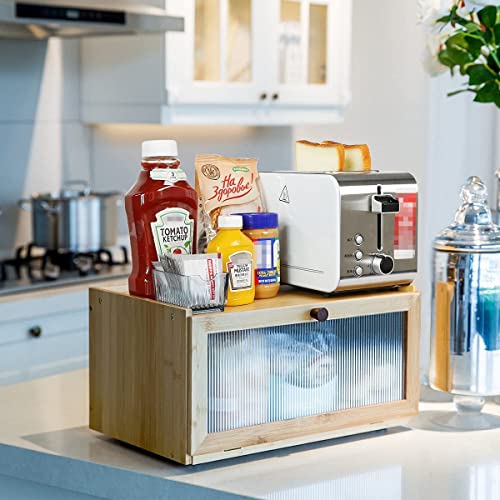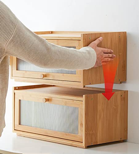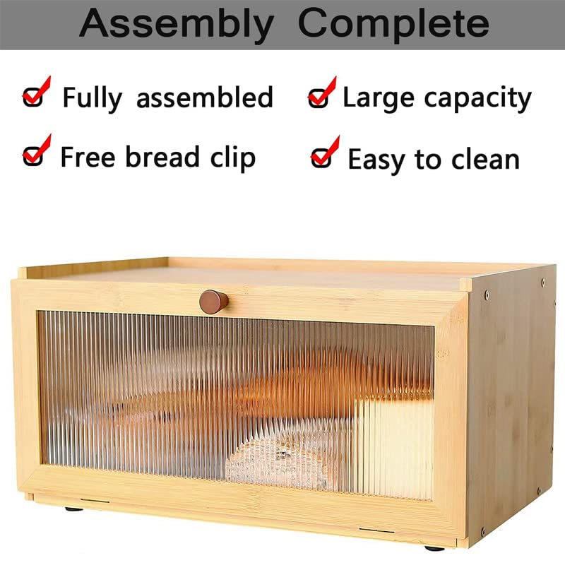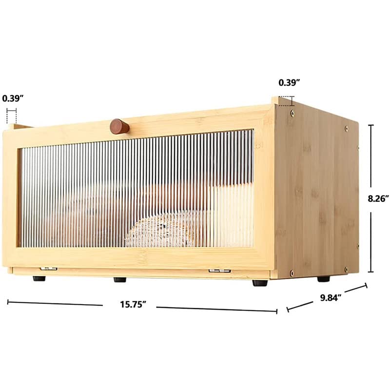 HUAGHLL - صندوق خبز من الخيزران لسطح الطاولة، صندوق تخزين الخبز بسعة كبيرة، حاوية خبز بيت المزرعة مع نافذة من هواجل (مجمع بالكامل - طبقة واحدة)