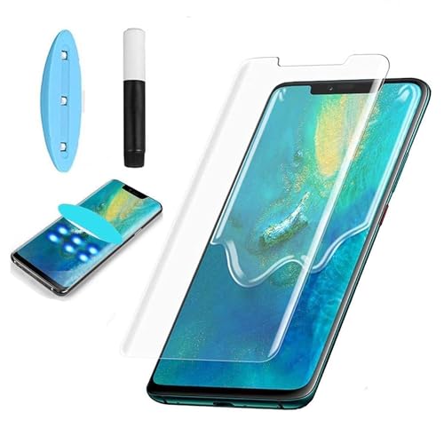 HUNCH - شاشة حماية من الزجاج نانو اوبتيك منحنية لاصقة للحماية الإضاءة فوق البنفسجية لموبايل هواوي ميت 20 برو شفافة