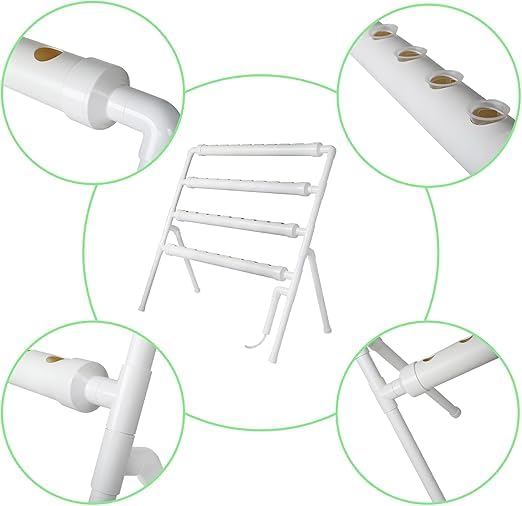MERIDIAN HYDROPONICS - نظام الزراعة المائية، 36 موقع نباتي، 4 أنابيب من بلاستيك بي في سي، مؤقت متضمن، تصميم جانب واحد