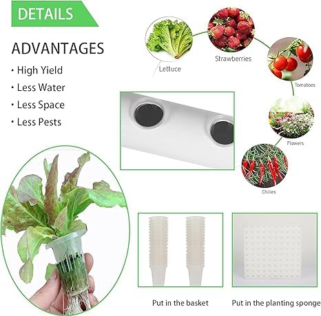 - مجموعة كاملة: يتضمن نظام دوران المياه ومؤقت وجميع المكونات الضرورية لإعداد زراعة مائية وظيفية بالكامل