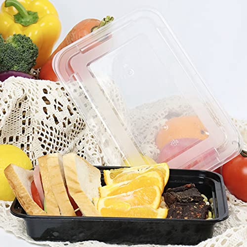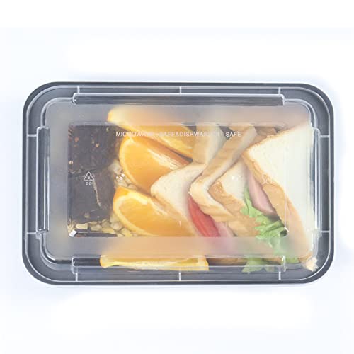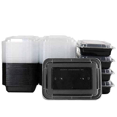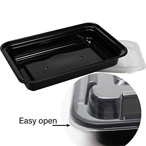 HYMEEE - مجموعة حافظات تحضير طعام بينتو بمقصورة فردية وغطاء محكم الاغلاق لتخزين الطعام لبوصة بوكس قابلة لاعادة الاستخدام مصنوعة من البلاستيك خالية مادة بيسفينول ا سعة 28 اونصة مكونة 48 قطعة هيمي أسود