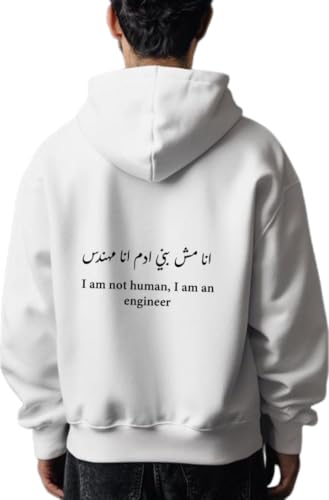 Generic - سترة بقلنسوة بعبارة I am not human, I am an engineer باللون الأبيض