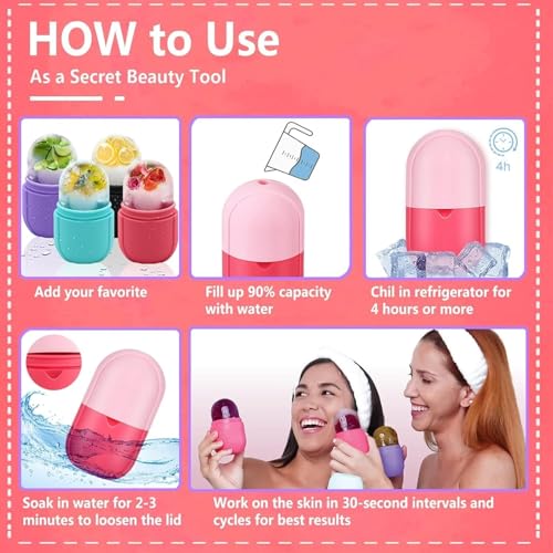 - روتين سهل من 3 خطوات: املأ قالب الثلج المصنوع من السيليكون بالماء أو التونر، ثم قم بتجميده لمدة 4 ساعات، ثم لفه بضربات لطيفة لمدة 30-60 ثانية. استخدمه يوميًا للمساعدة في تقليص مظهر المسام وتهدئة المناطق بعد إزالة الشمس أو الشعر.