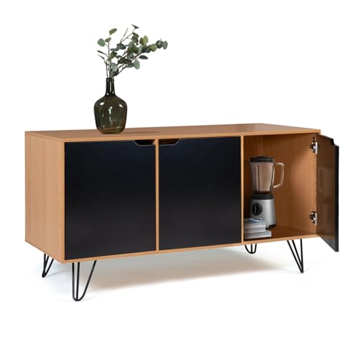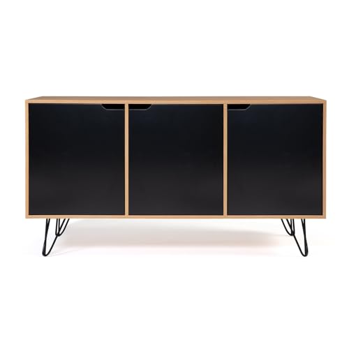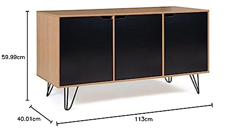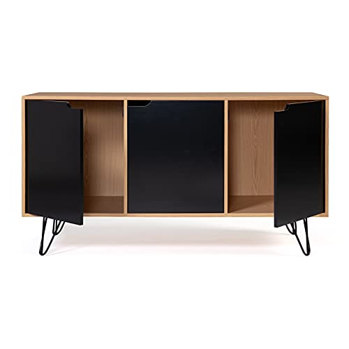 - أضف لمسة من التصميم الكلاسيكي إلى غرفة المعيشة الخاصة بك مع خزانة جانبية منخفضة ذات 3 أبواب باللون الأسود والخشبي من نويمي.