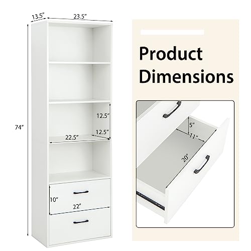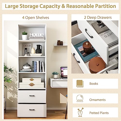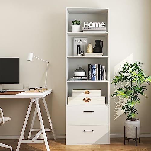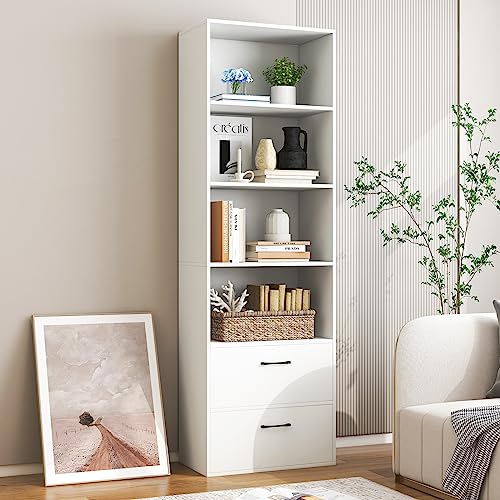 IFANNY - خزانة كتب باربعة ارفف مع ادراج طويلة وخزائن للكتب برج رف عمودي تخزين خشبية عصري لغرفة النوم وغرفة المعيشة والمكتب المنزلي من ايفاني خشب مُصنع أبيض