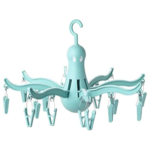Ikea - رف تجفيف ملابس بلاستيك قابل للطي بشكل اخطبوط بريسا من ايكيا مع 16 مشبك خطاف لون تركواز