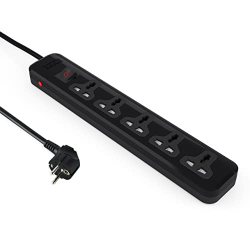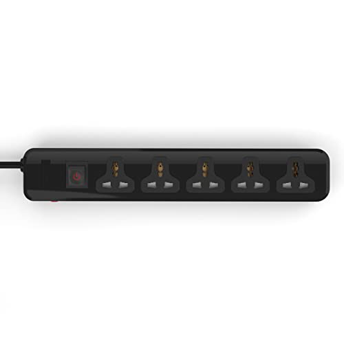 iLOCK - مشترك كهرباء يونيفرسال بـ5 منافذ مع مفتاح التحميل الزائد من اي لوك (اسود) - قد يختلف التغليف